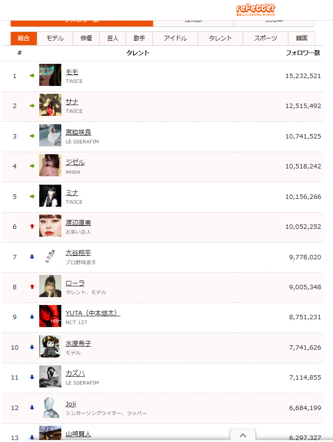 002 | 名無しさん | 2025/10/15(水) 20:35:38 | 一位が、トワイスとか還流のアイドル。フォ | 画像 |